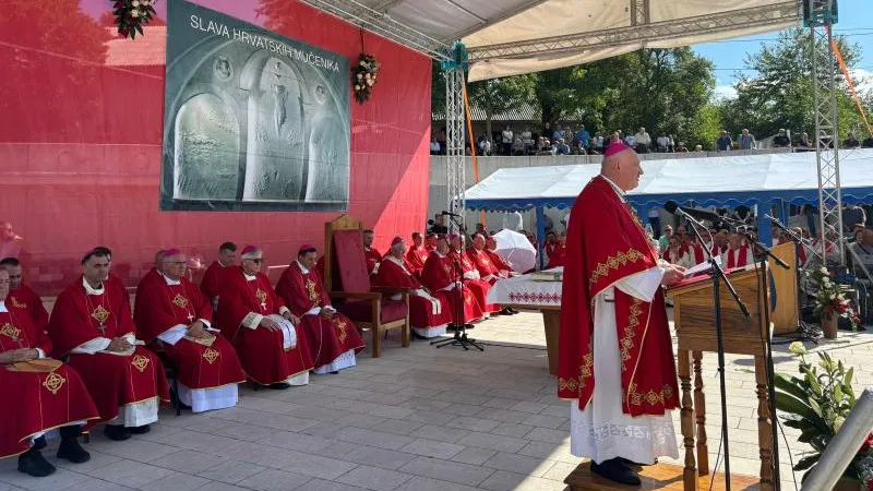 Misu u Svetištu hrvatskih mučenika koncelebrirali su nadbiskupi riječki Mate Uzinić, splitsko-makarski Zdenko Križić i zadarski Milan Zgrablić te biskupi gospićko-senjski Marko Medo, šibenski Tomislav Rogić, porečki i pulski Ivan Štironja, hvarski Ranko Vidović, dubrovački Roko Glasnović, umirovljeni nad/biskupi Marin Barišić i Ivan Milovan, generalni vikar Vojnog ordinarijata vlč. Ilija Jakovljević, generalni tajnik HBK-a preč. Krunoslav Novak, provincijal hrvatskih kapucina fra Ante Barišić i brojni svećenici.